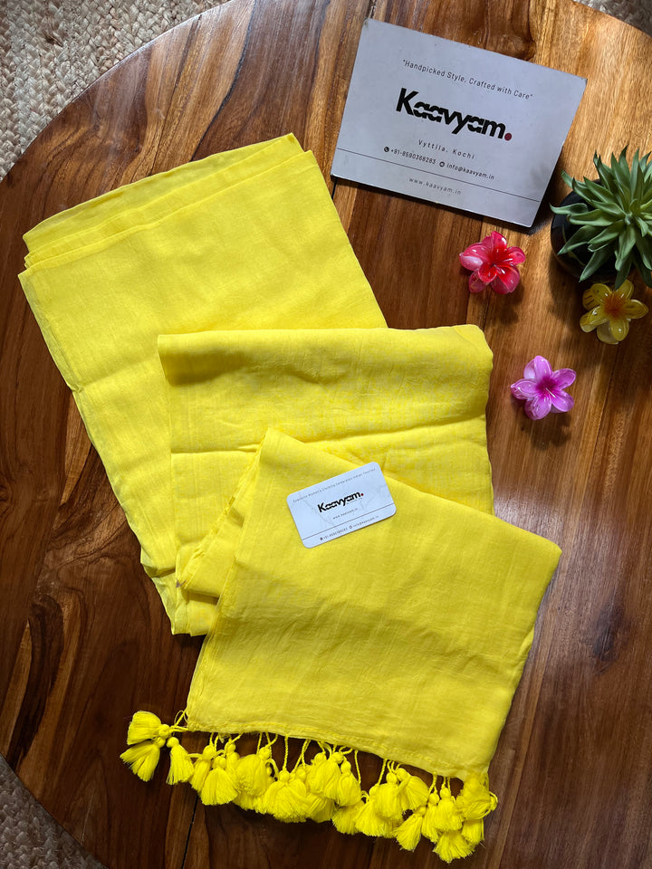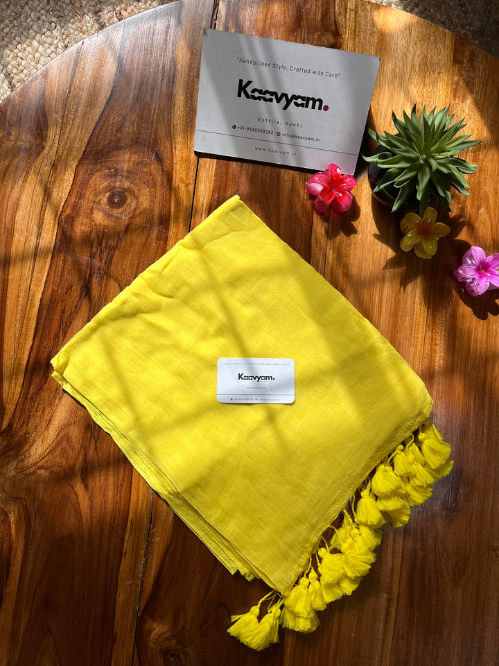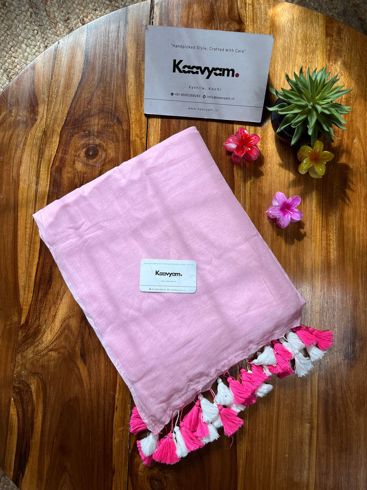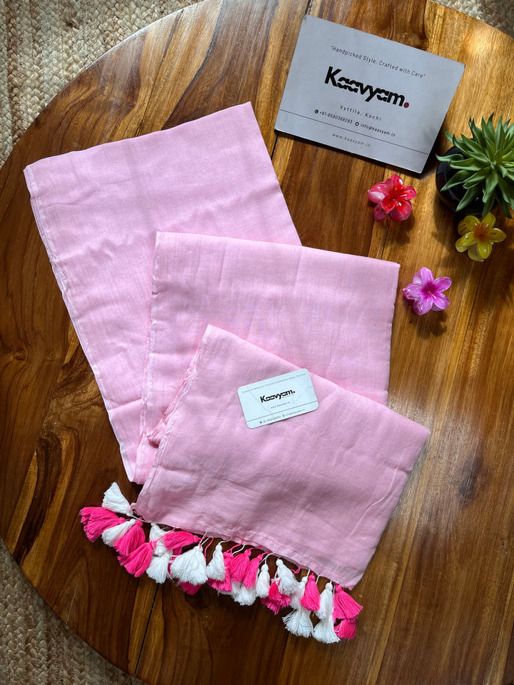 Plain color soft 120 count mul cotton saree ended with handmade tassels on pallu