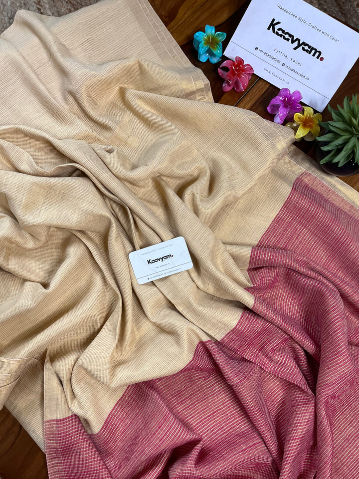 This beige and red mul modal saree combines elegance with versatility, making it an excellent choice for both festive occasions and casual wear. Crafted from soft mul modal fabric, it offers...
