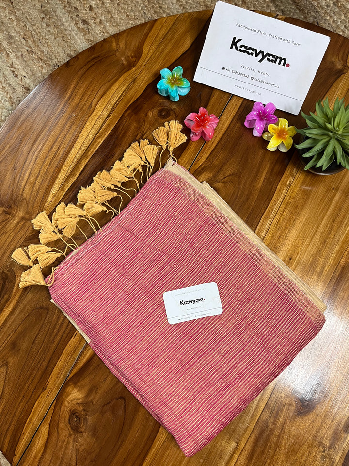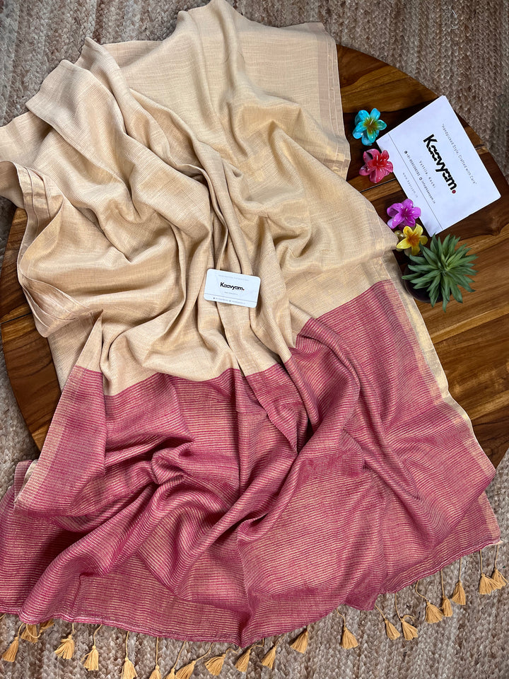 Pure cotton mul modal saree with minimal thin border and contrast pallu ended with handmade tassels on pallu