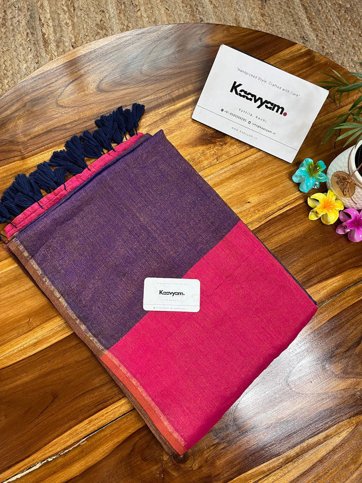 Handloomed and hand painted, resulting in a unique and authentic piece. This saree may contain minor thread pulls and paint stains. Please note that tassels may vary in size and color due to availability.