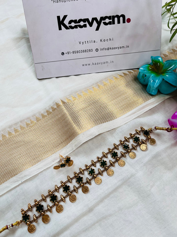 Upgrade your jewelry collection with our stylish Coin Layer neckpiece & Earrings. Made with high-quality materials, the coin neckpiece adds a touch of sophistication to any outfit. With its elegant design, this set is perfect for the festive Elevate your style with our Coin Layer Choker & Earrings now.