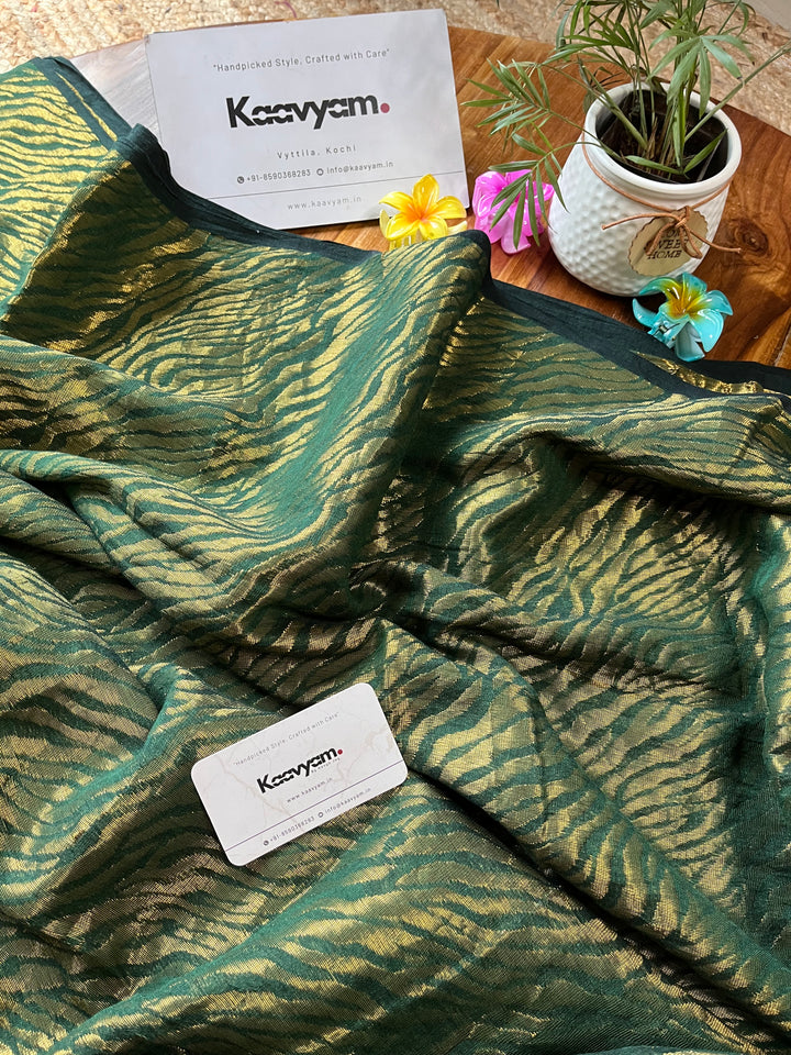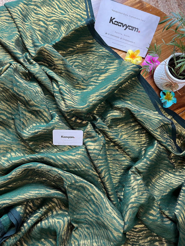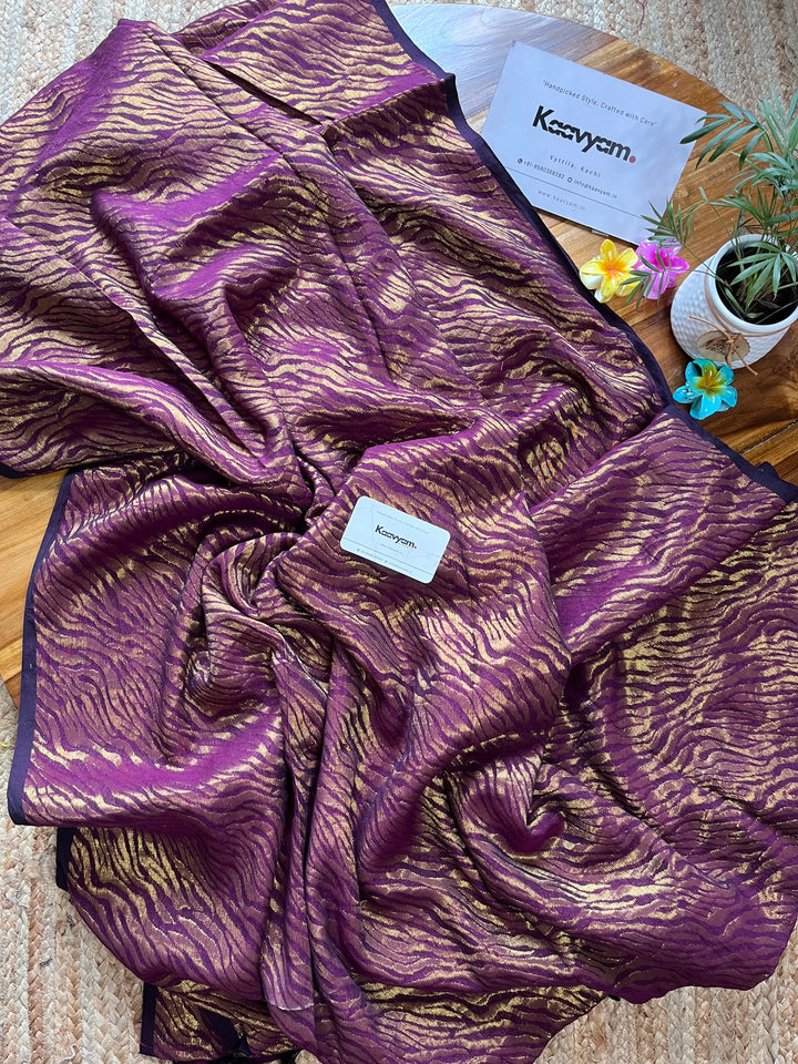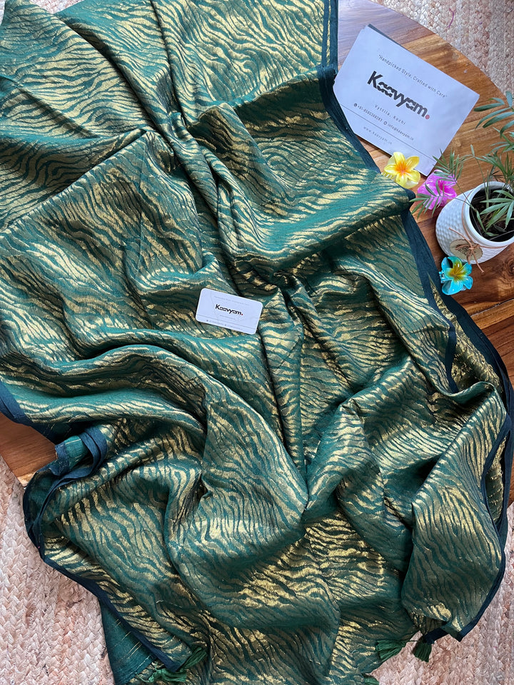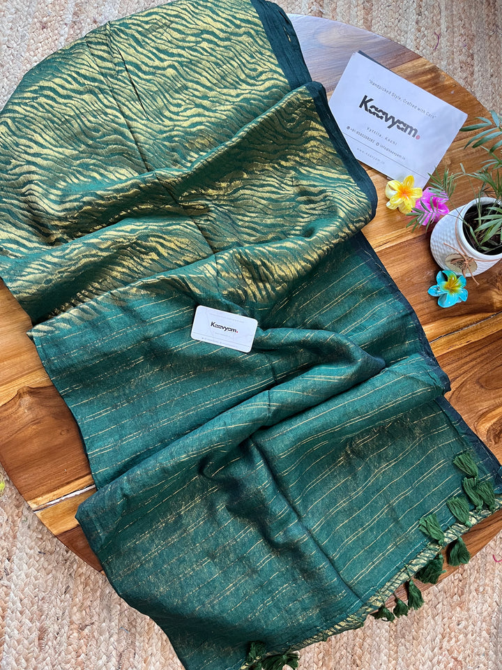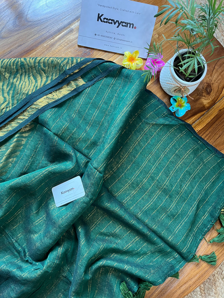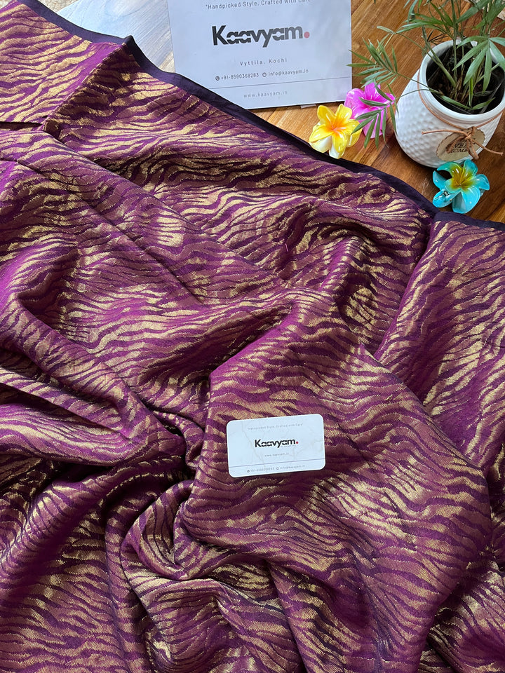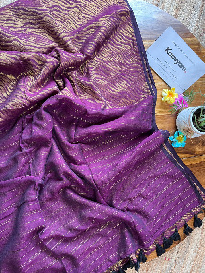 This master piece plain designer zari with golder jari woving all over the saree ended minimal pallu with handmade tassels.