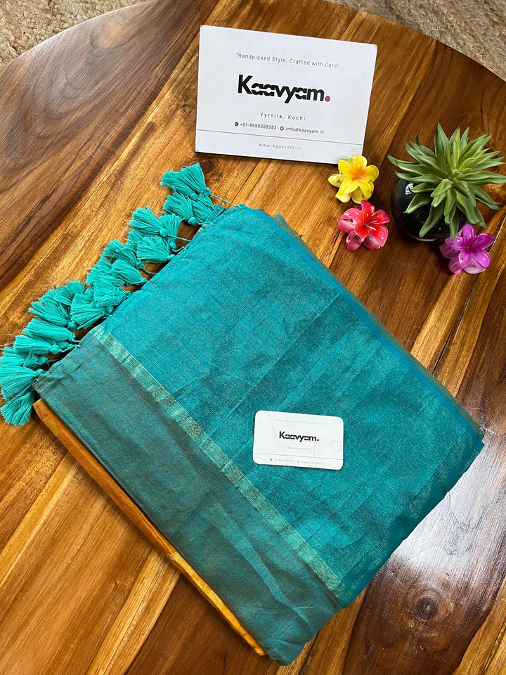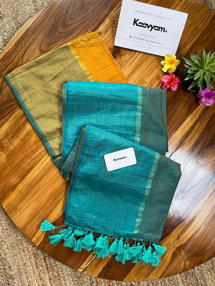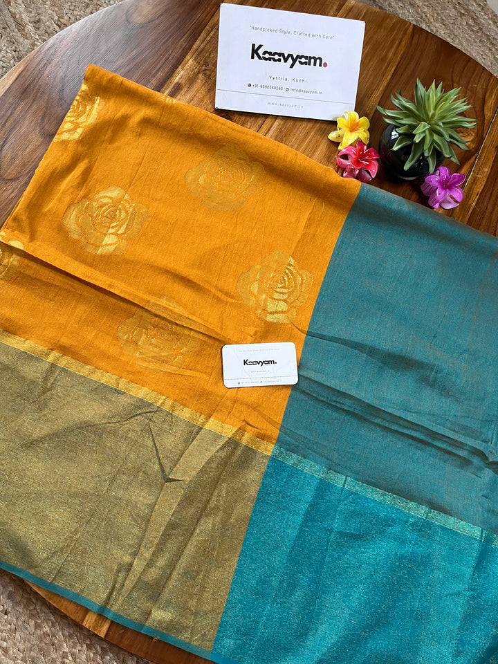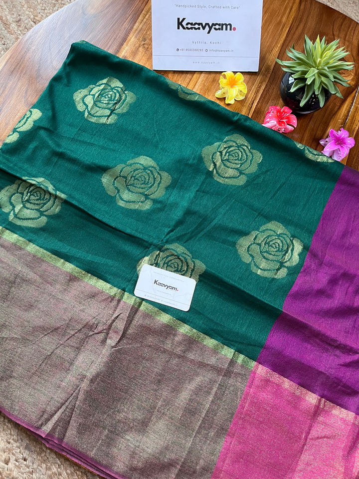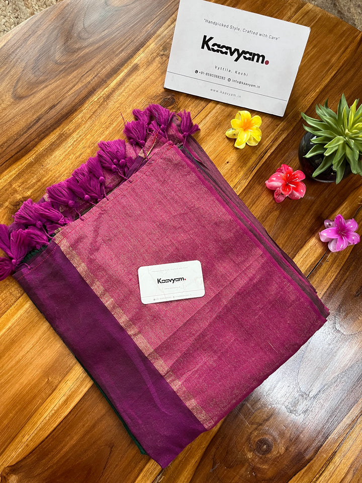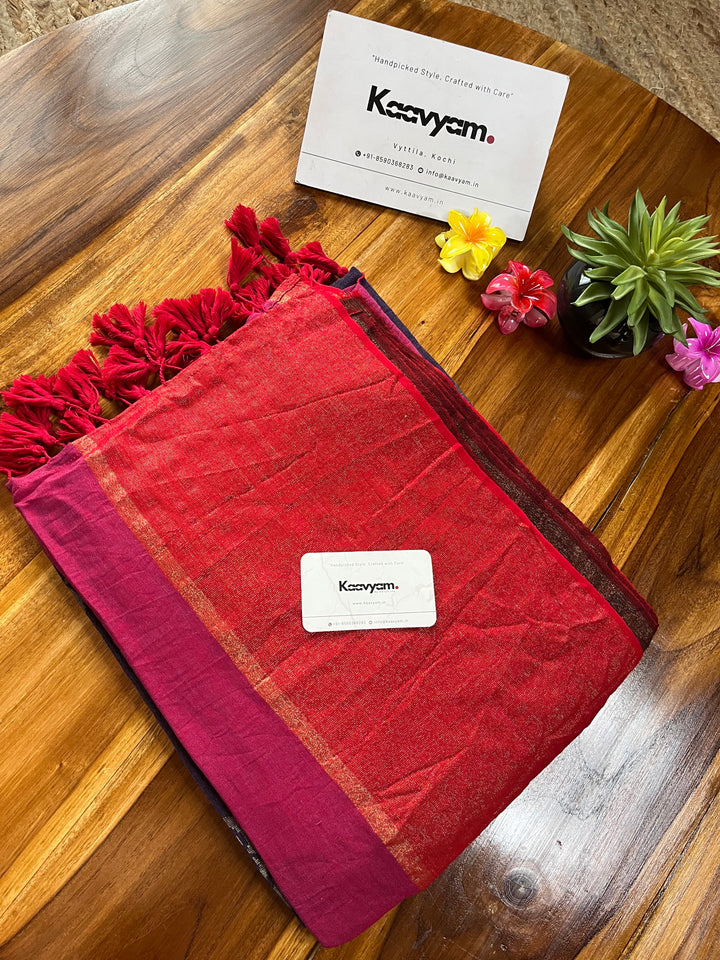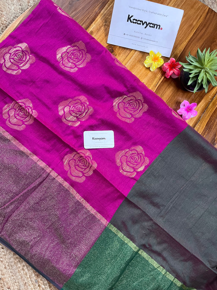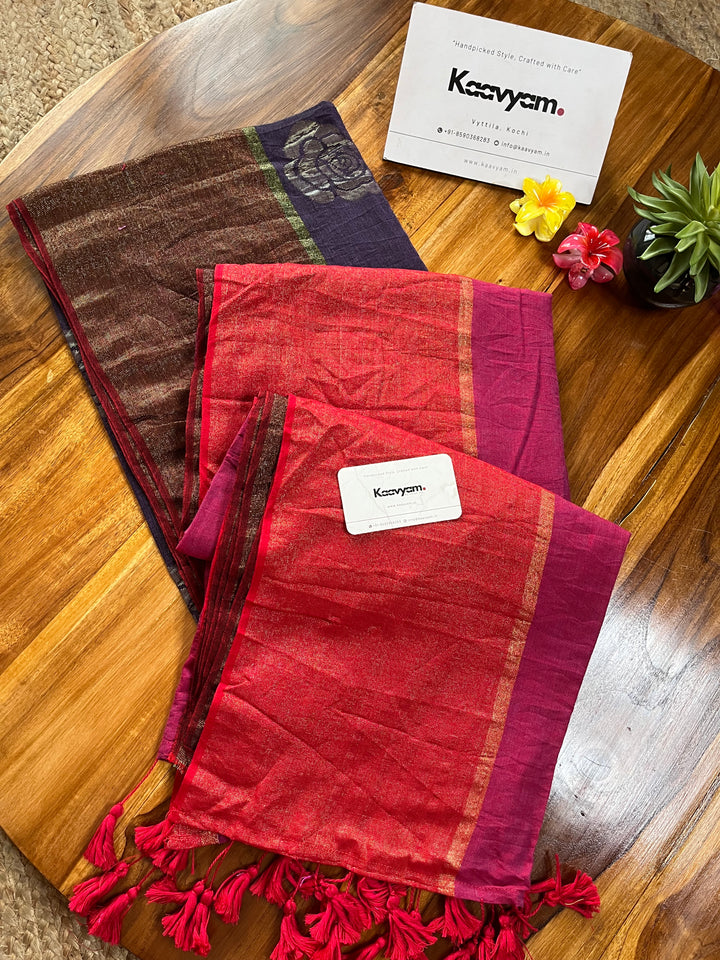 Premium cotton zari saree with hibiscus floral motif jari woven design all over the saree ended with contrast pallu finished with tassels.