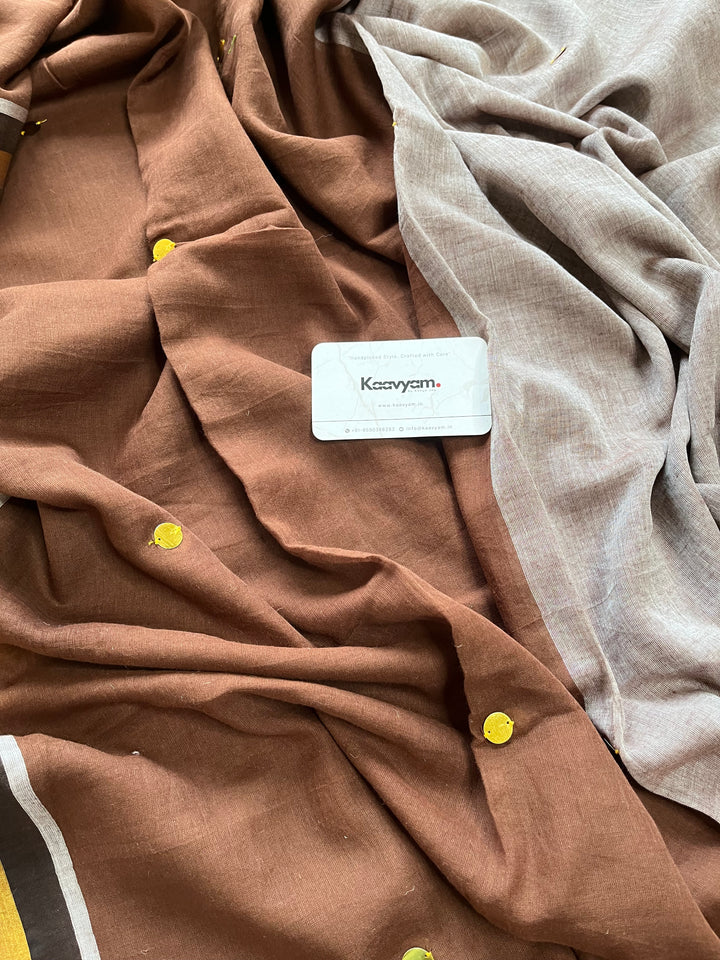 Elevate your ethnic wardrobe with this sophisticated Half & Half Sequins Tissue Pallu Saree. The distinctive design features a dual-toned composition complemented by intricate sequin embellishments that catch the light beautifully. The luxurious tissue pallu adds a touch of opulence, making this saree perfect for special occasions while remaining comfortable due to its premium mul cotton construction.
