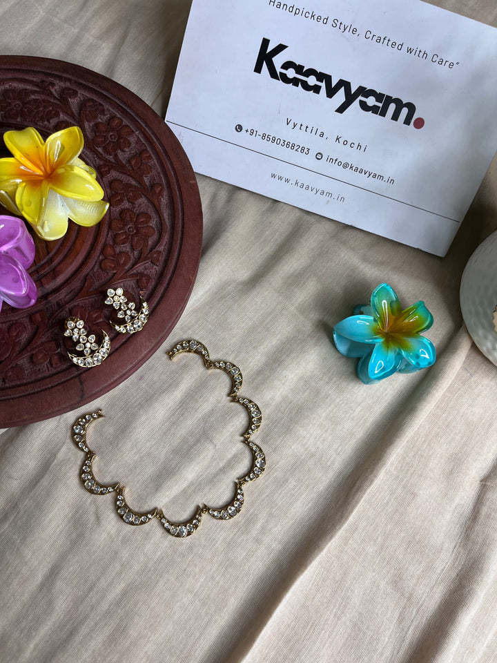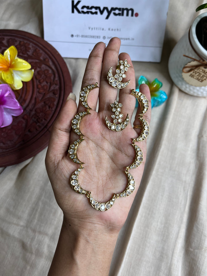 Elevate your ensemble with this expertly crafted Half Moon Stone Necklace & Earrings set. Featuring delicately shaped half-moon stones, the design balances elegance and subtlety, making it ideal for both formal...