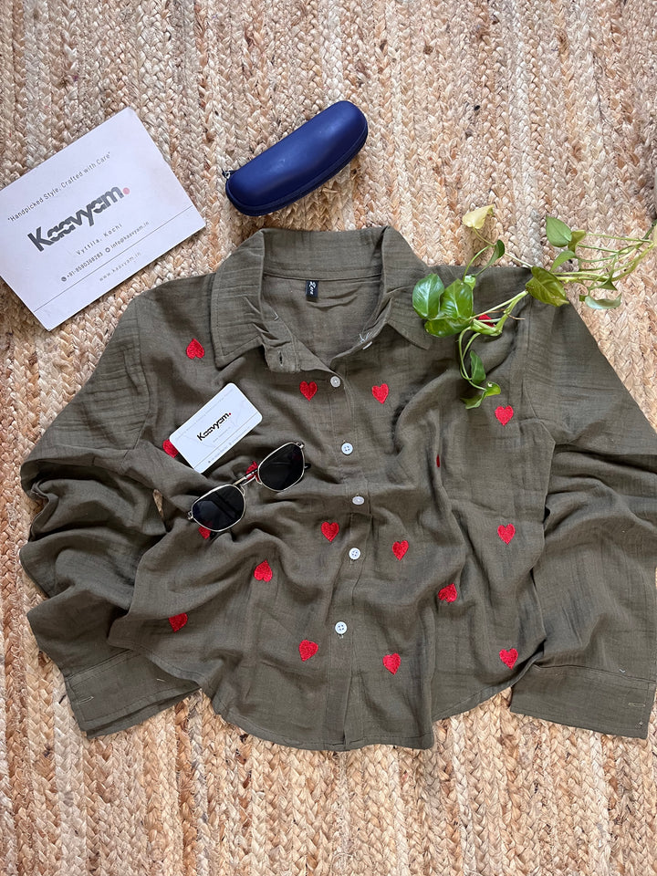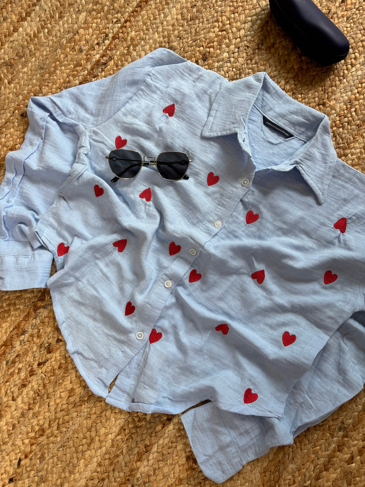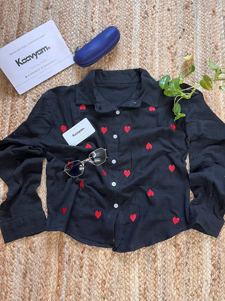 Add some hearts embroidery on your daily wear fits. Be minimal and stylish.