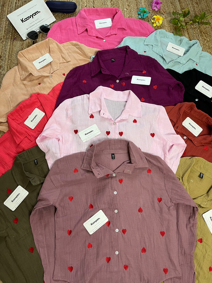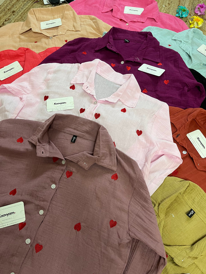 Be Different, Be Stylish: Add some hearts embroidery on your daily wear fits. Be minimal and stylish. Fabric: Made from soft and breathable Mul cotton. Shirt only included in this package...