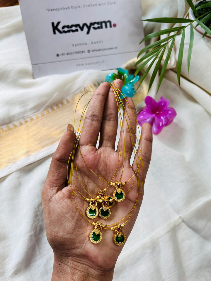 Elevate your traditional attire with the Invisible Chain Palakka Neckpiece, a seamless blend of cultural heritage and modern minimalism. This neckpiece showcases the classic Palakka design with an innovative invisible chain...