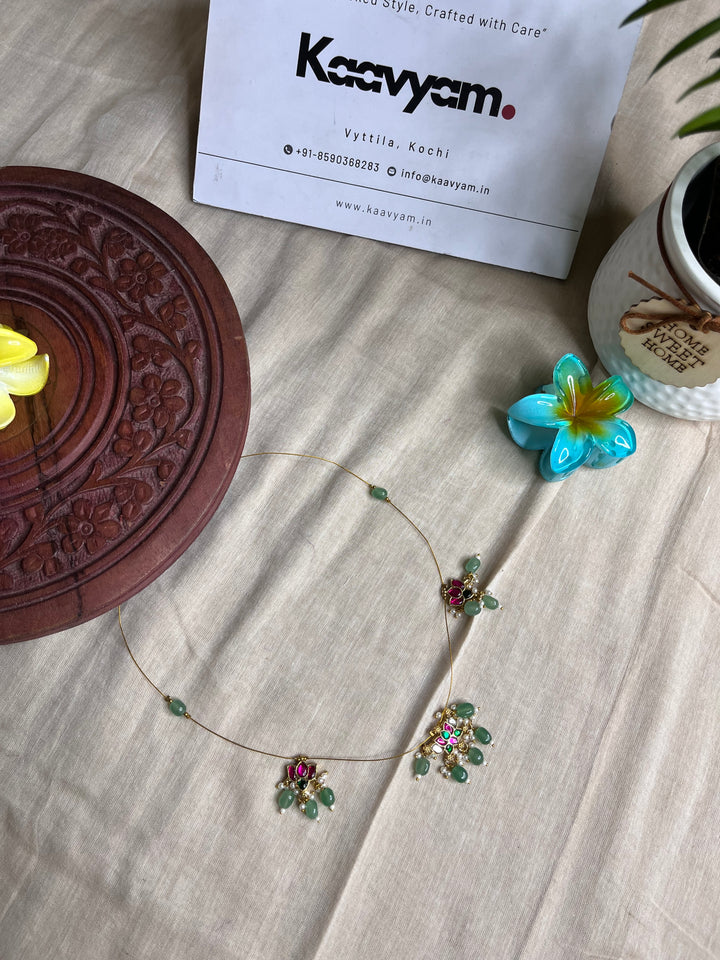 Its a minimal piece of invisible neck piece with kundhan charms specially designed for minimal stylists.