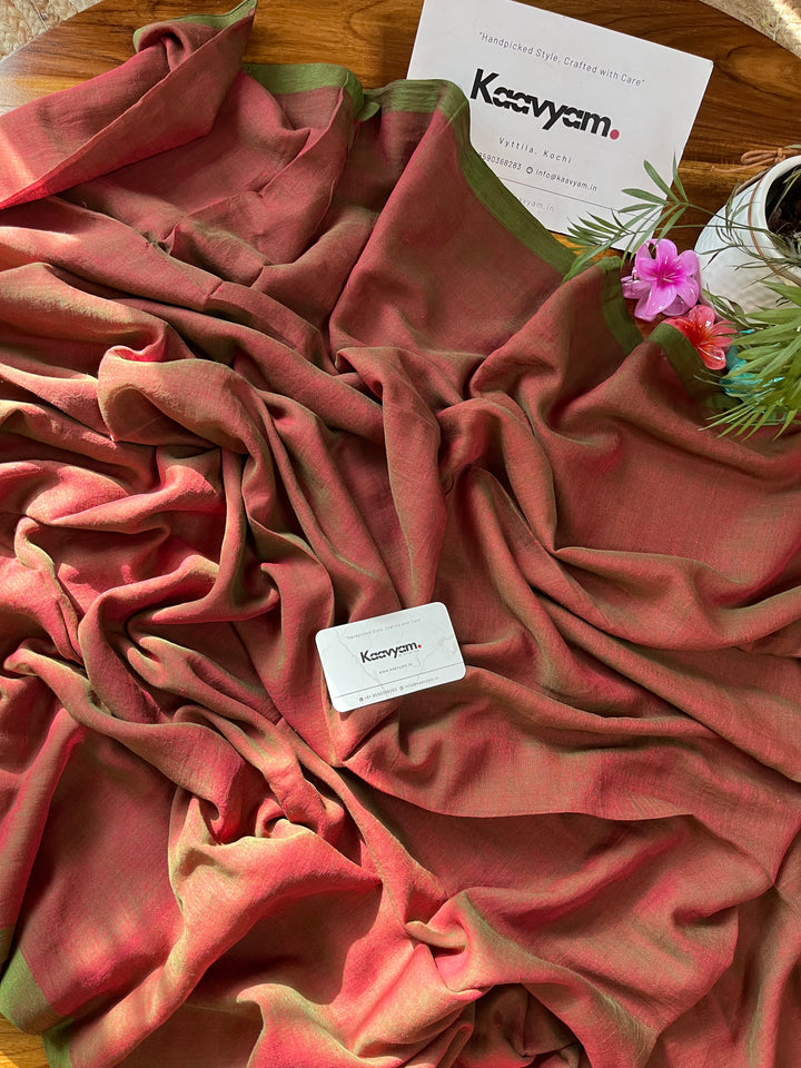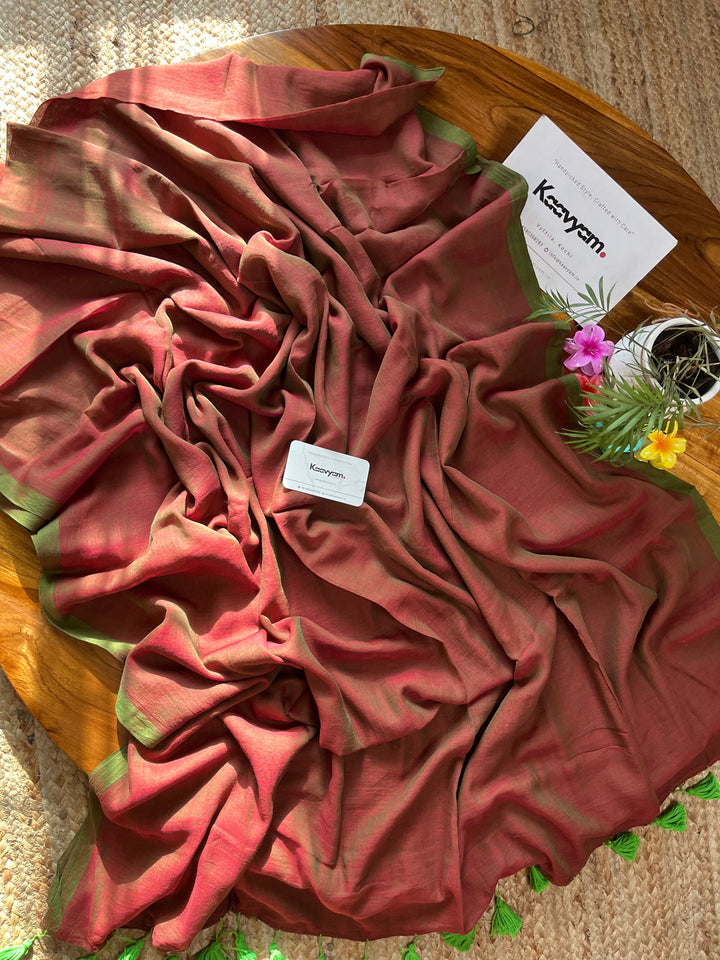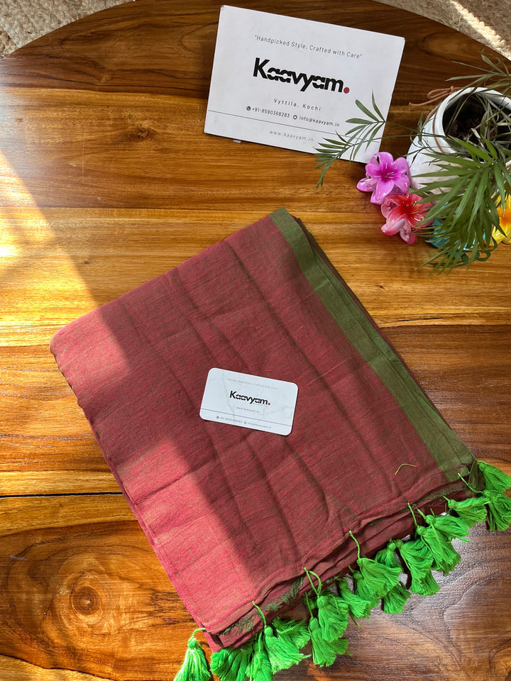 Plain cotton mul cotton saree with half inch contrast border all over the saree ended with contrast handmade regular size tassels