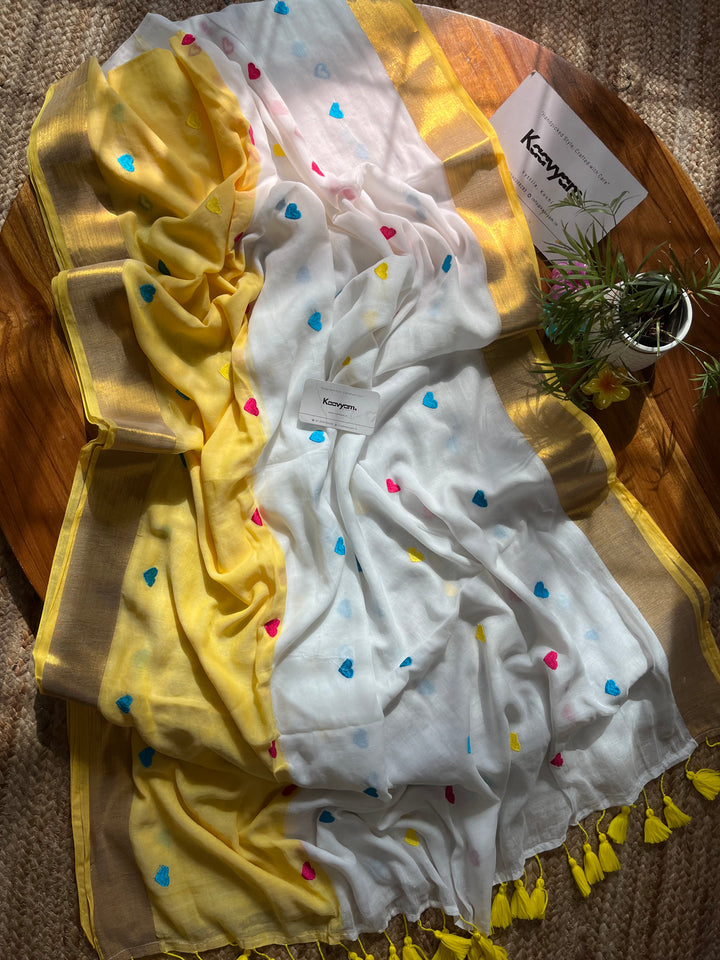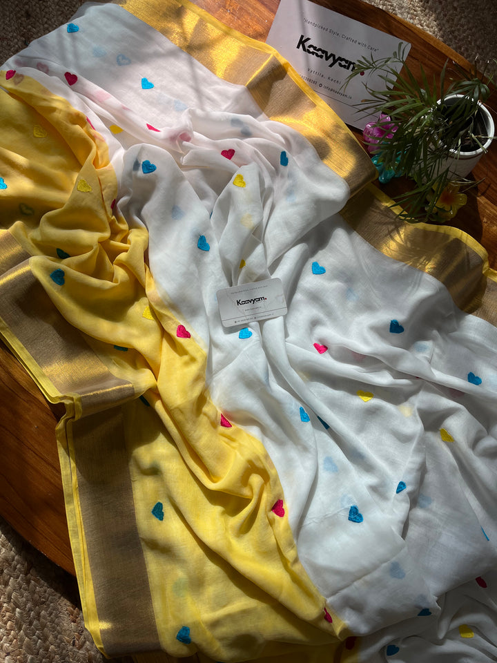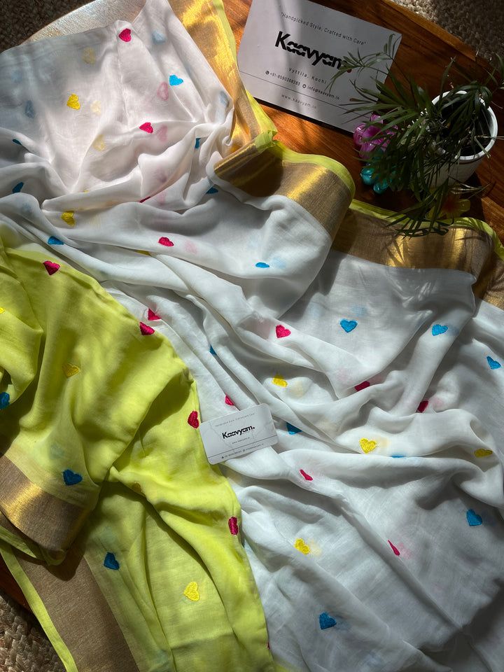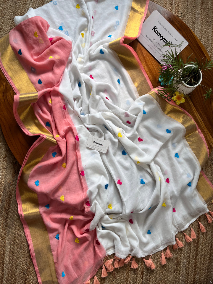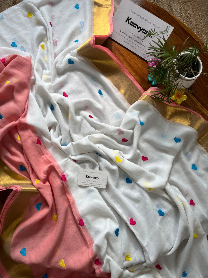 Kasav & Color Heart Embroidery Mul cotton Saree