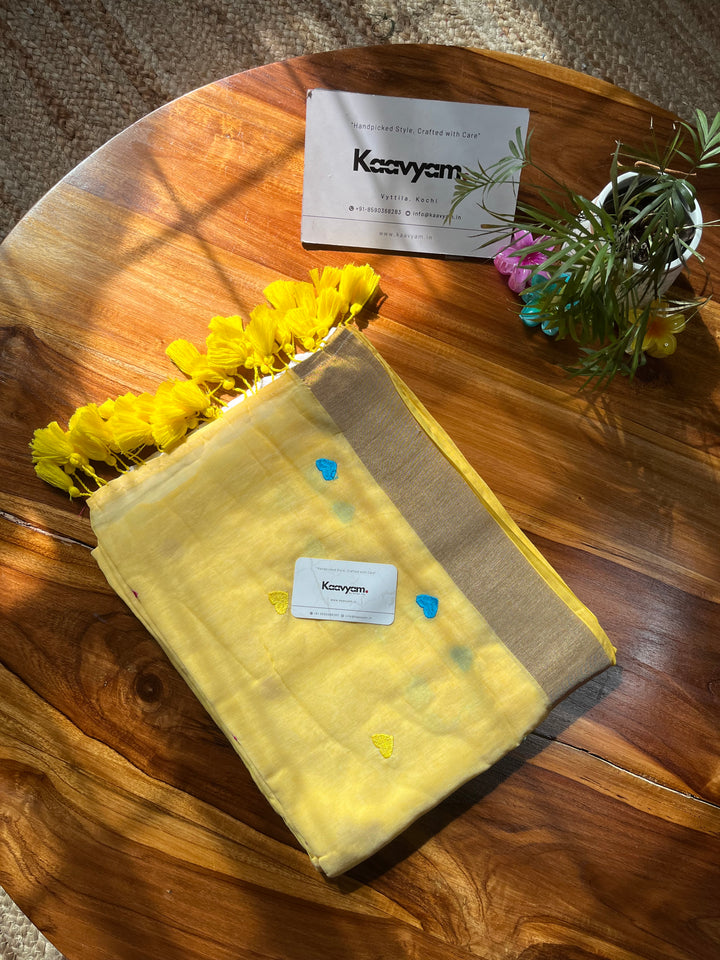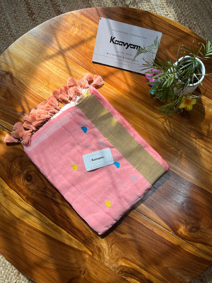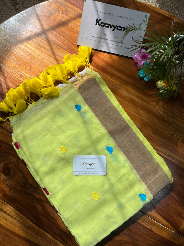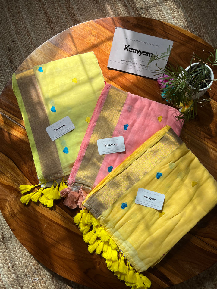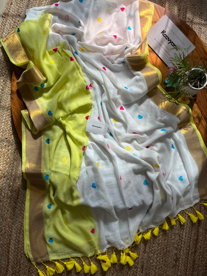 Kasav & Color Heart Embroidery Mul cotton Saree