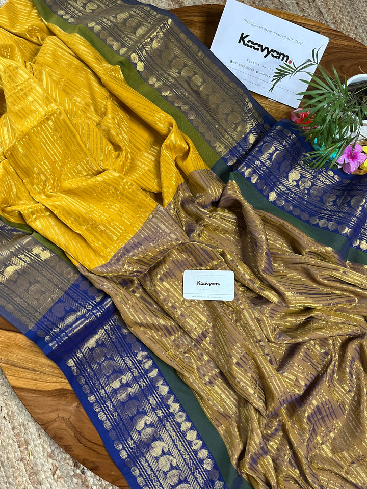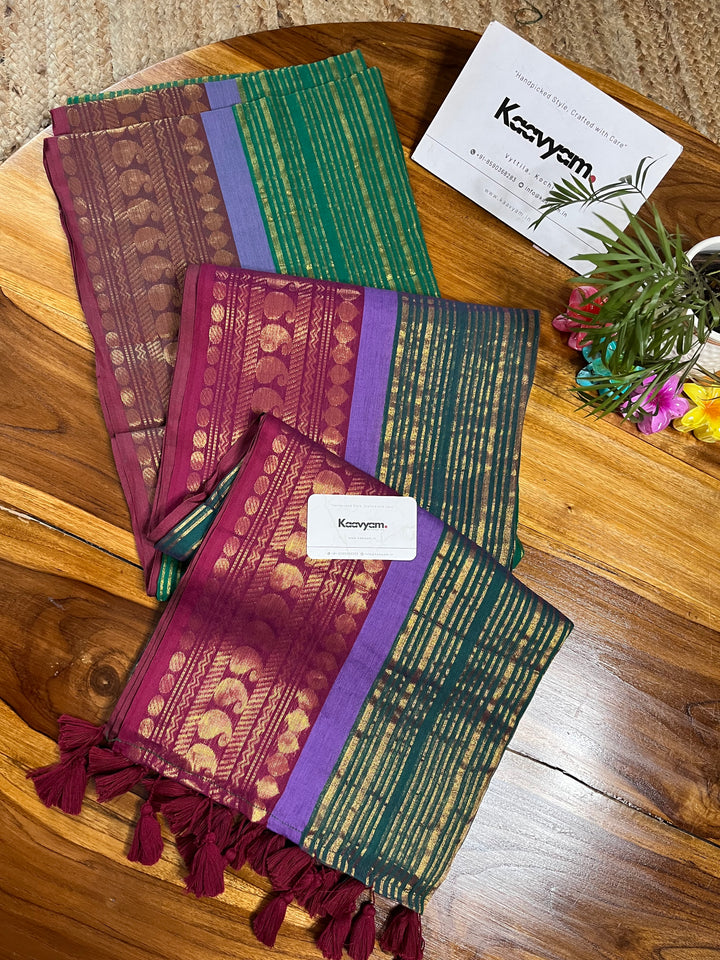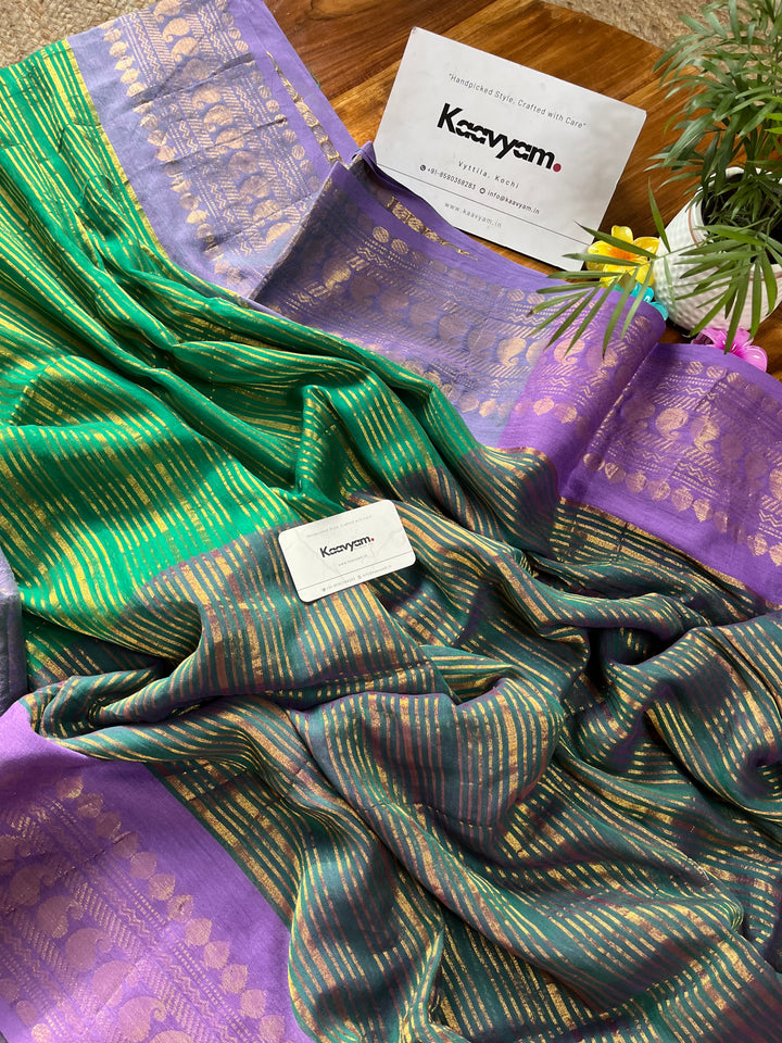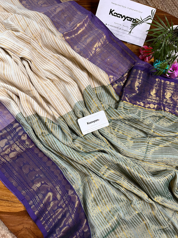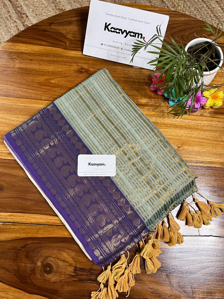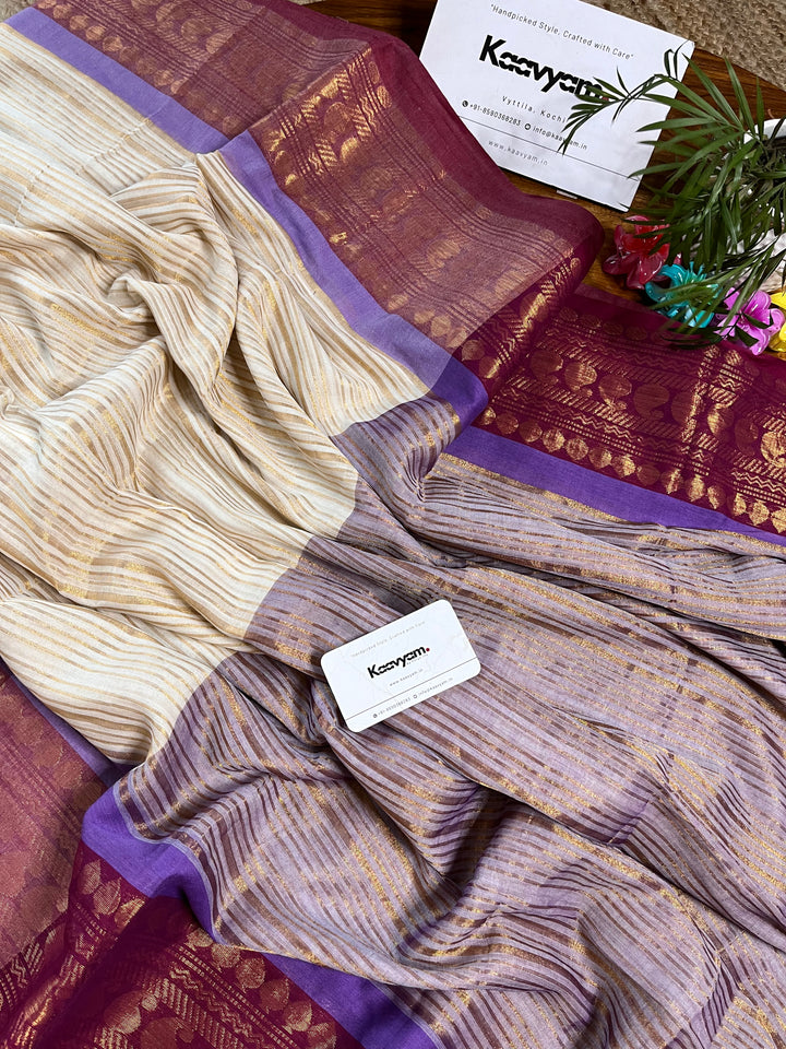 Kasav Stripe Motif Border Mul Cotton Saree - Manka