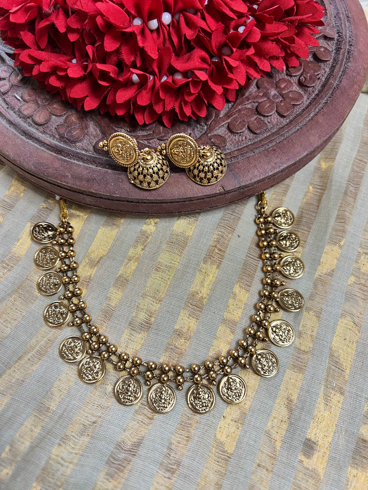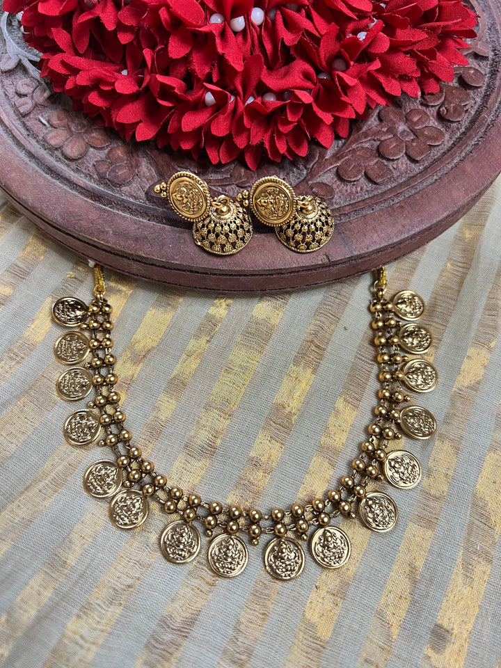 Laxmi Coin Necklace Product Details:✔ Gold pleated Jewellry ✔ Includes: Neckpiece & earrings ✔ Craftsmanship: Premium Indians style finished jewellery ✔ Care: Avoid contact with water & perfume ✔ Actual...