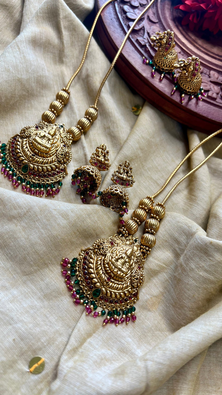 Get ready to be sparkled ✨Long Laxmi Haram ✨ South Indian Jewellery Package contains 1 set of necklace with earrings Actual pics shared, no changes from this. Colour may slightly vary...
