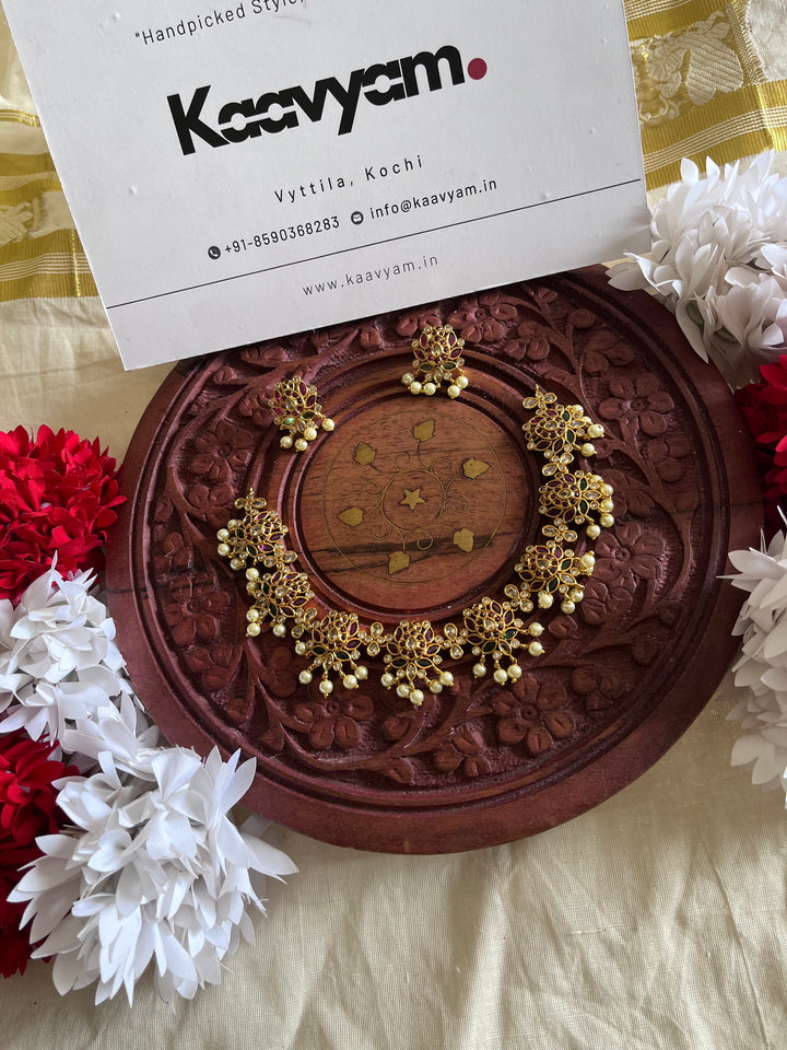 This is an antique touch necklace and earrings. Perfect for traditional outfits. Gold pletaed jewellery set Neck piece and its matching earrings included in this set Actual pics shared, no changes...