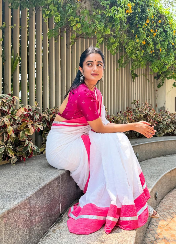 Namitha's Kasav Stripes Border Mul Cotton Saree