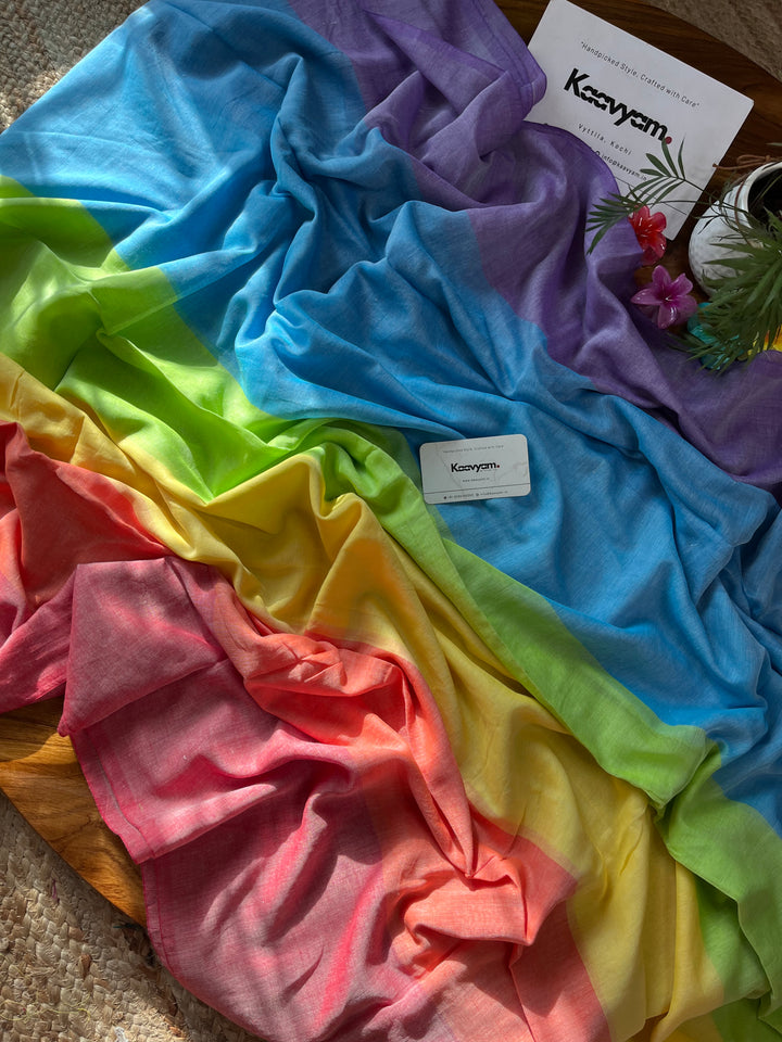 Adorn your tresses with the ethereal beauty of our rangoli collection mul cotton sarees!