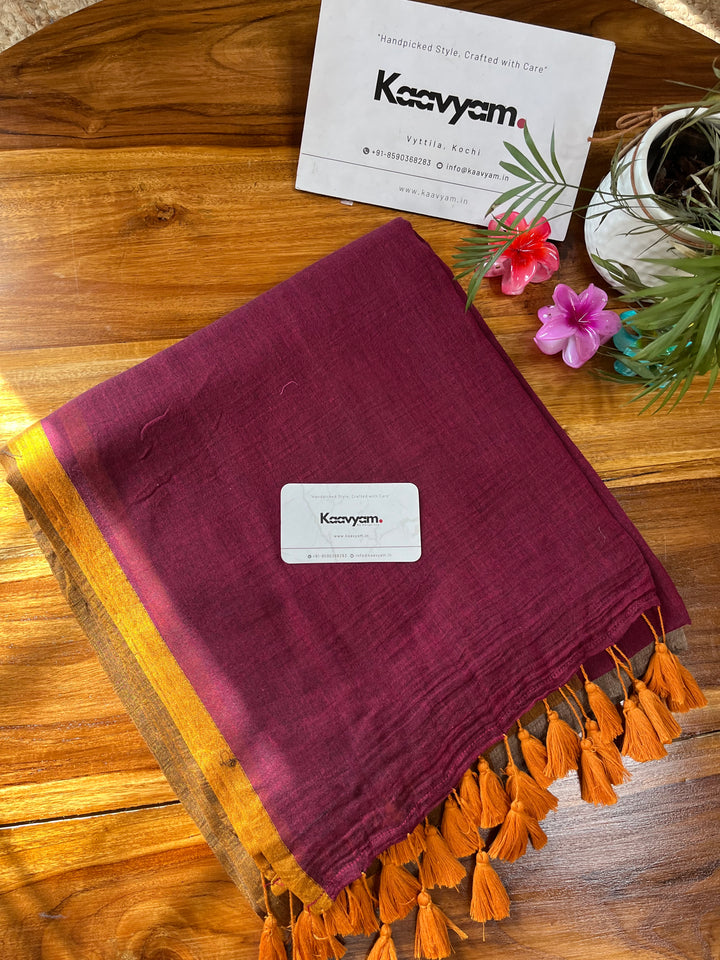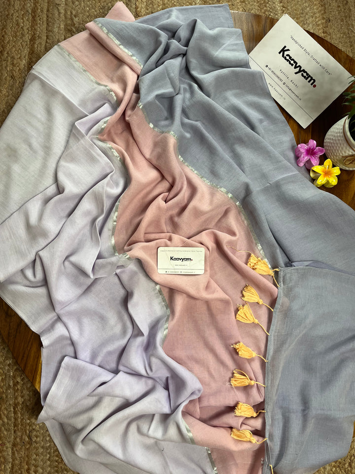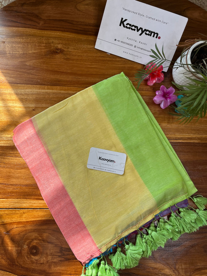 Pure cotton 120 count mul mul cotton rangoli colorful zari stripes all over the saree ended with handmade tassels on pallu