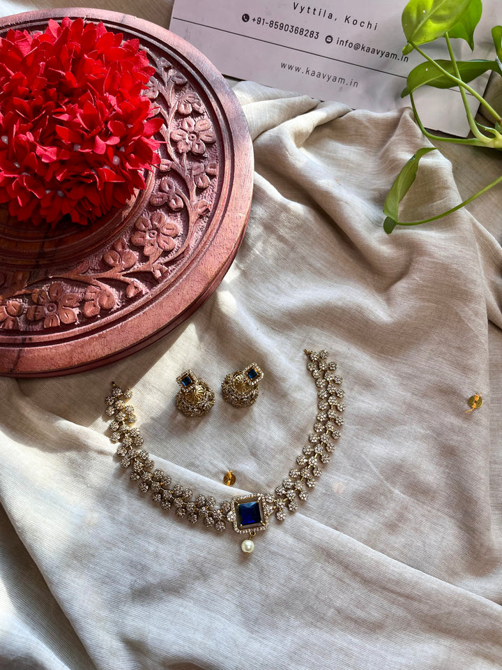 Get ready to be sparkled✨AD necklace with blue sapphire drops ✨ AD Jewellery Package contains 1 set of necklaces and earrings Actual pics shared, no changes from this. Colour may slightly...