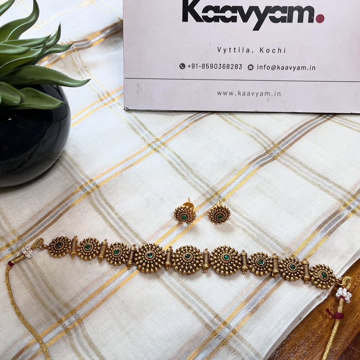 Its a minimal piece of round stone embellished style choker piece specially designed for minimal stylists.