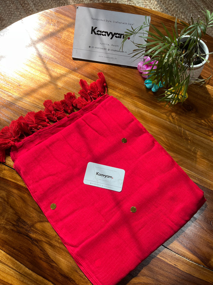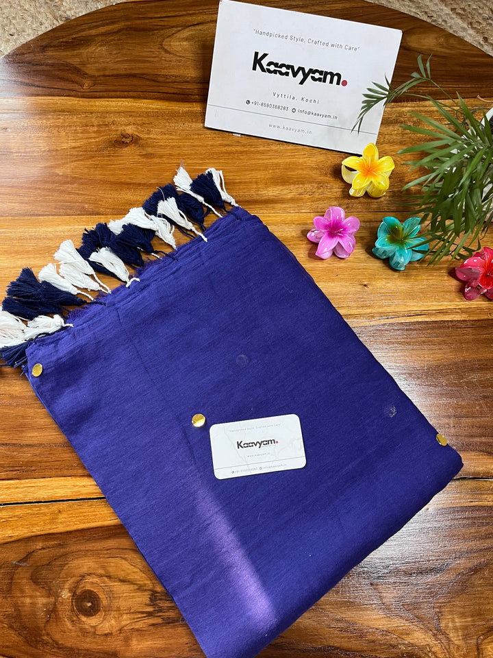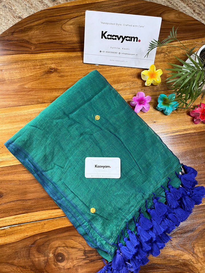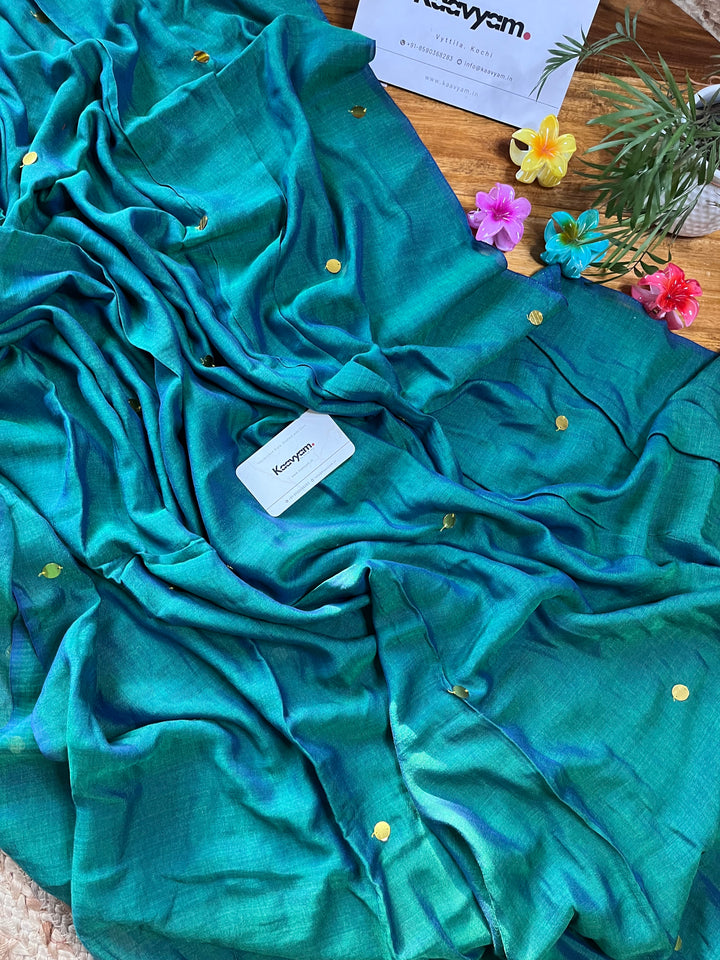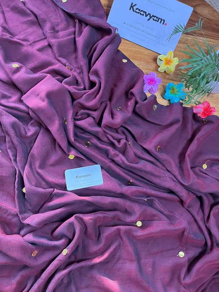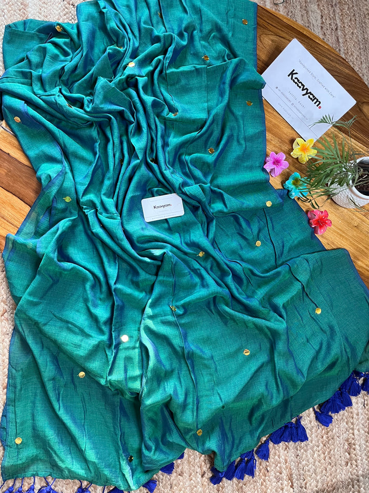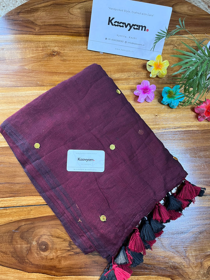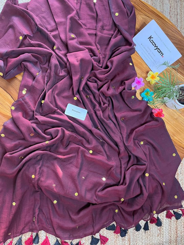 Pure cotton mul mul plain saree with golden sequins all over the saree ended with handmade tassels on pallu