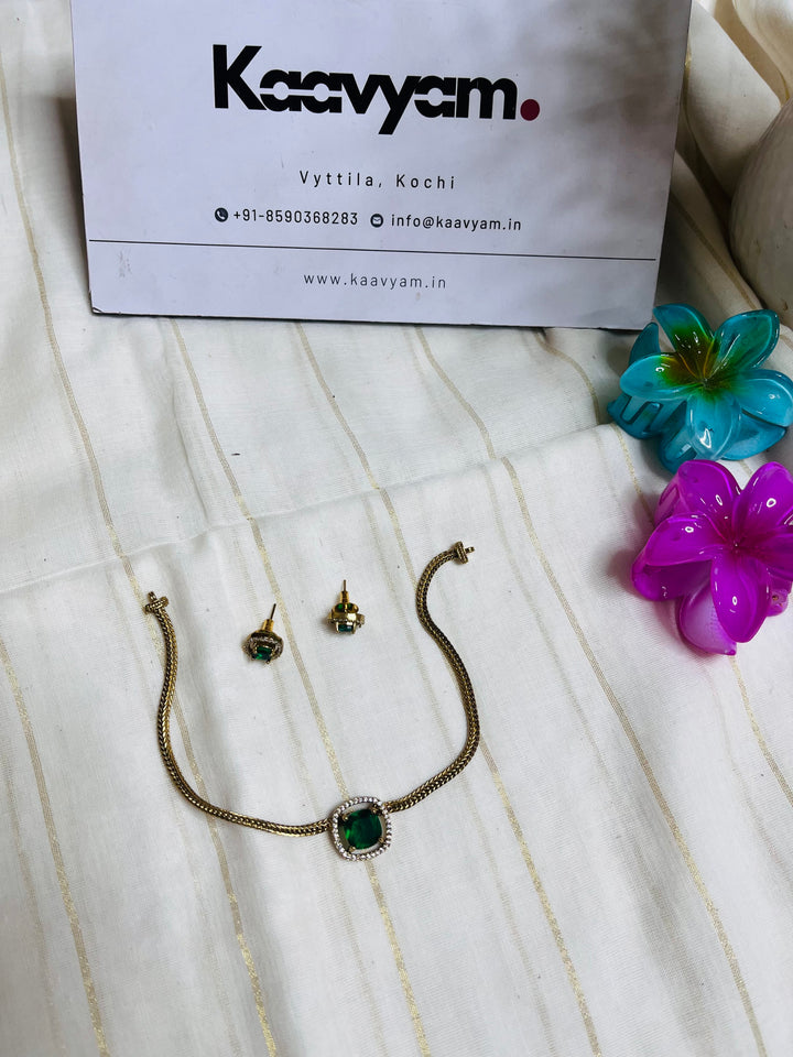 Get your jewelry game strong with this minimal American Diamond necklace. Who's ready to slay? Gold pleated jewelry American Diamond jewelry & stud earrings Package contains 1 set necklace and its...