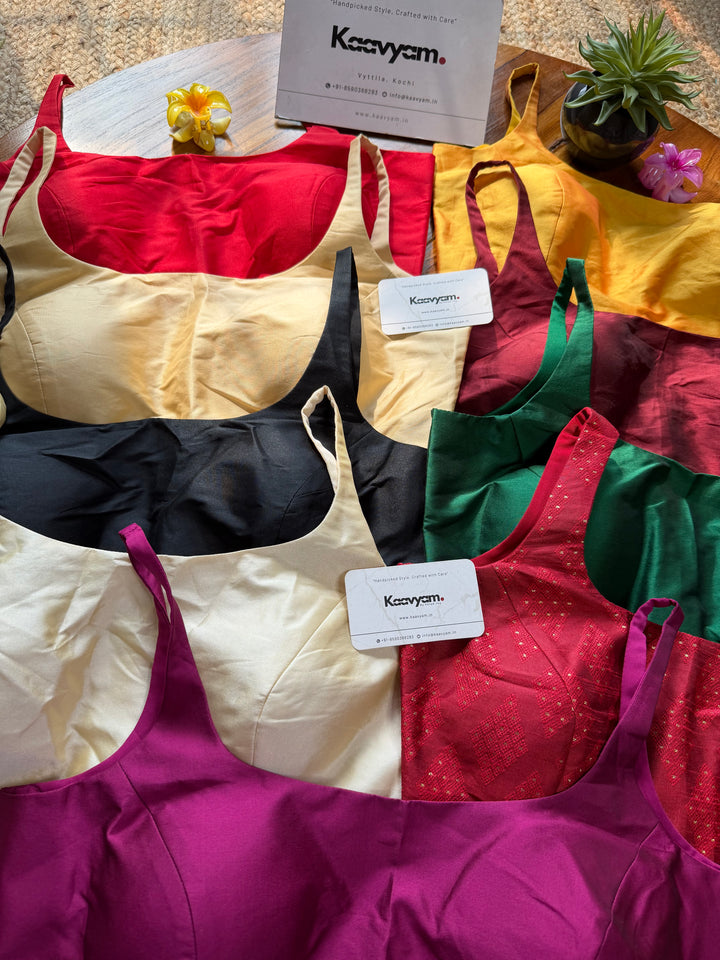 Need a quick fashion fix? Look no further! Effortlessly elevate your wardrobe with this sleeveless ready-to-wear blouse, designed for the modern woman who values both style and convenience. The minimalist silhouette offers versatile styling options—pair it with sarees, skirts, or trousers for an instantly polished look. Crafted for comfort and durability, this piece transitions seamlessly from casual gatherings to professional settings. The sleeveless design provides breathability, making it ideal for warm weather while maintaining a sophisticated aesthetic. A timeless addition to any collection.
