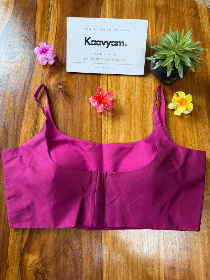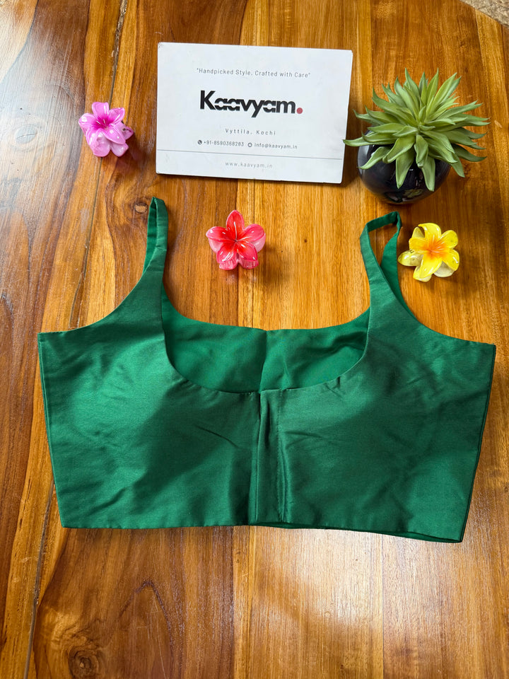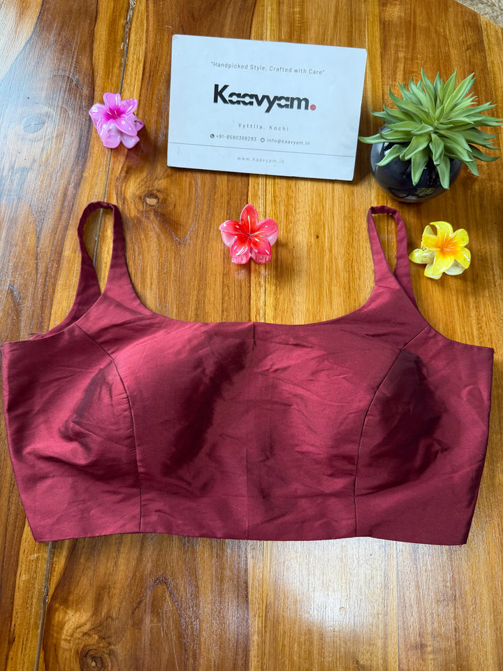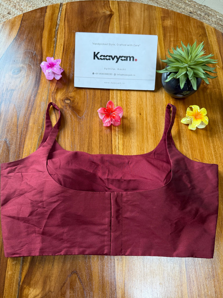 Plain shiny and textured blouse stitched with lining, back open, round neck and padded.