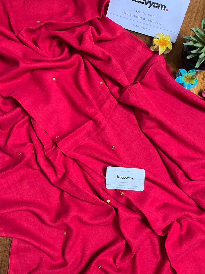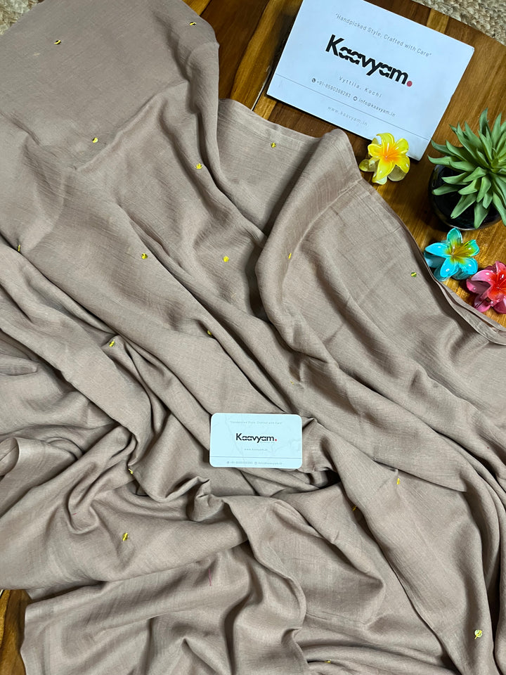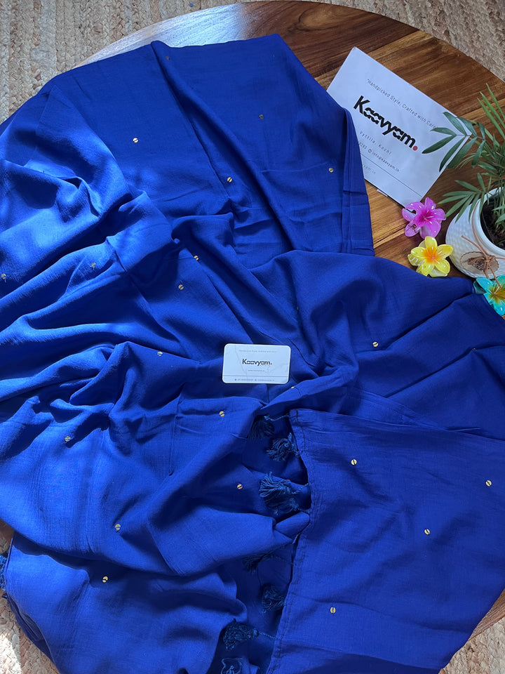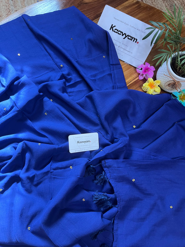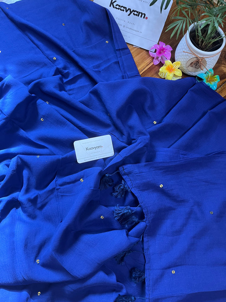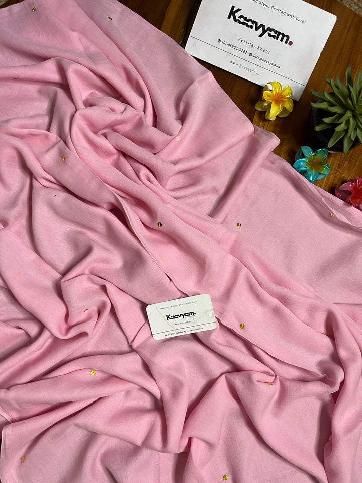Pure cotton mul mul plain saree with golden small sequins all over the saree ended with handmade tassels on pallu
