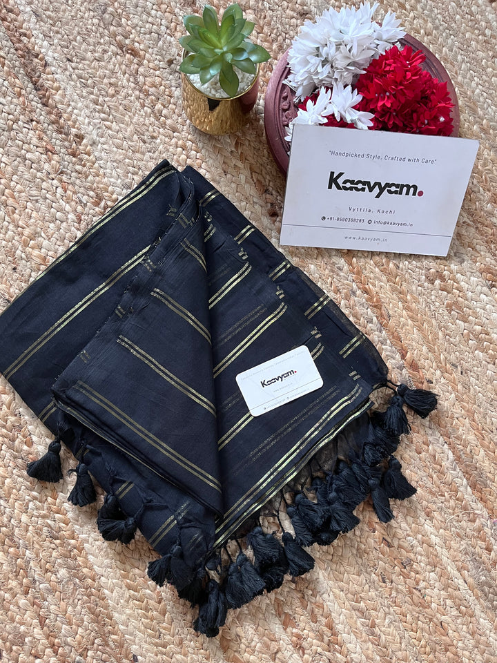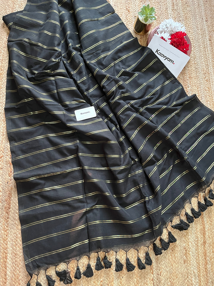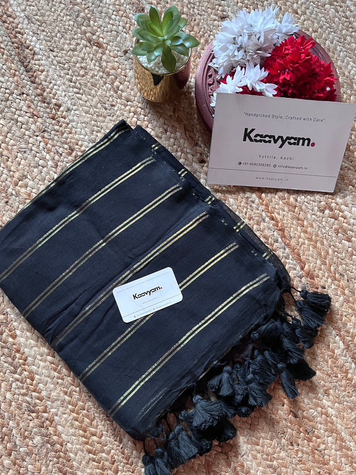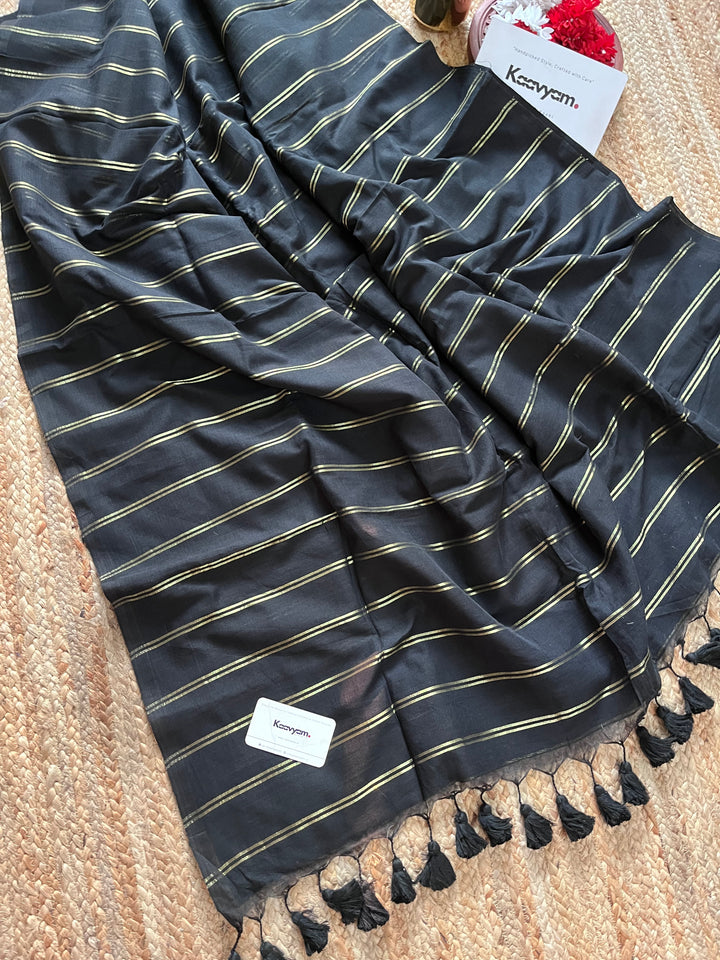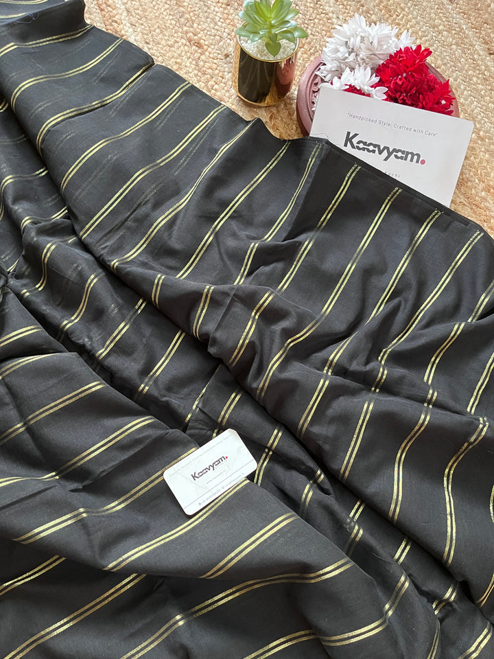 STRIPES- BLACK MUL MUL SAREE